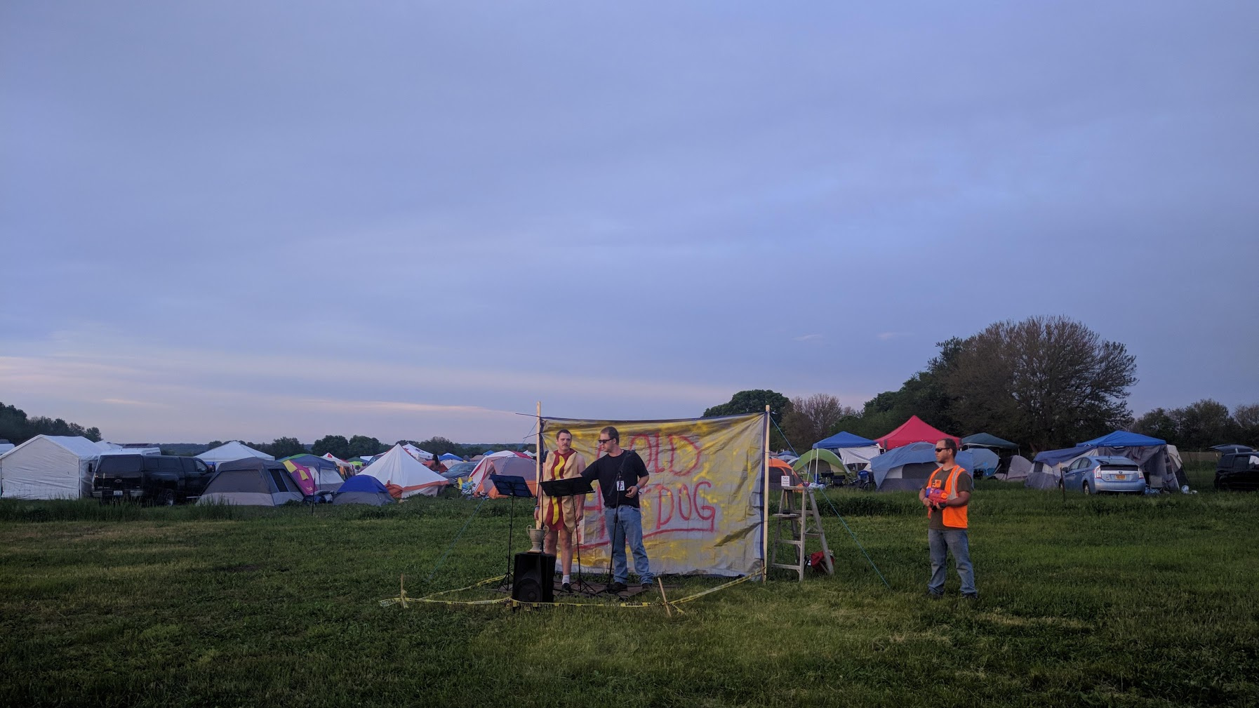 These guys built a makeshift stage and played a set during sunrise kickball at summer camp last year. Absolutely the best and most appropriate thing to have going on while a bunch of spun out kids tried to play kickball.