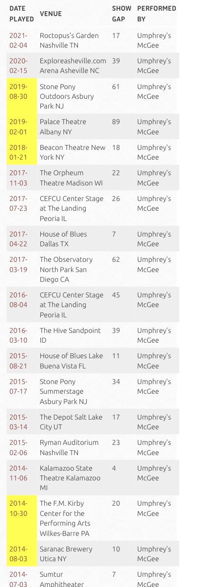 Probably not as rare as Ninja but definitely pretty rare. Eat seems high for current UM, definitely played more frequently back in the day. 11 Eats played by the bandsince 1/1/16.